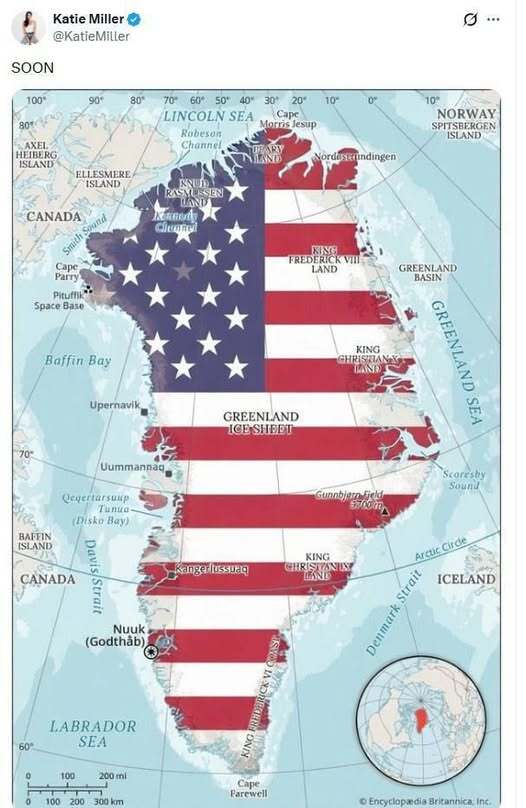 Публікація дружини діючого заступника голови адміністрації Білого Дому. Гренландія в кольорах американського прапора.