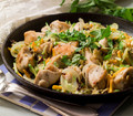 Ингредиенты:Курица 1 тушка Лук репчатый 1 шт Морковь 1 шт Лимон 1 шт Мята 6 листья Масло растительно