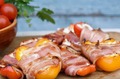 ИНГРЕДИЕНТЫ:8 перец халапеньо, без семян8 тонко нарезанных куриных грудок8 ломтиков бекона230 г сливочного сыраСоль и перец для вкусаПРИГОТО