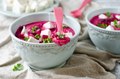 Ингредиенты:— 3 вареных картофелины— 2 вареных яйца— 3 средних свежих огурца— 4–5 редисок— 250 г отварной телятины— 150 г сыра фета— 1 л кеф