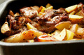 Інгредієнти:1 кілограм свинячих реберець5 картоплин2 ріпчасті цибулини2 столових ложки вершкового маслаСвіжий кріпСпосіб приготування:Крок п