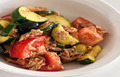 Інгредієнти:консервований тунець у власному соці - 500 гцукіні середнього розміру - 3 штпомідори - 6 штоливки і маслини без кісточок - 120 г