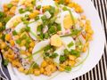 Інгредієнти:морська капуста - 150 гварене крабове м'ясо - 150 гконсервована кукурудза - 100 гварене яйце - 1 штзелена цибуля - 1 пучокмайоне