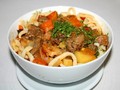 Ингредиенты:● Говядина или баранина — 0,5 кг.● Тонкая длинная лапша или спагетти — 0,5 кг.● Лук — 2 шт.● Морковь — 2 шт.● Картофель —