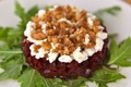 Інгредієнти:червоний буряк – 3 штбальзамічний оцет – 3 ст. ложкиподрібнені грецькі горіхи – 0,5 склянкифета або бринза – 170 голивкова олія