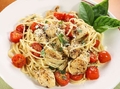 Інгредієнти:макарони - 100 гпомідори черрі - 3 шткуряче філе - 0,5 штпечериці свіжі - 5 штсільперецьтвердий сир - 40 гцибуля - 0,5 штСпосіб