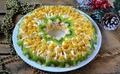 Ингредиенты:Куриная грудка — 300 ГраммСыр твердый — 150 ГраммЯйца куриные — 4 ШтукиМорковь — 1 ШтукаКиви — 1 ШтукаКукуруза консервированная