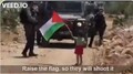 Батько палестинець відправляє поперед себе свою дитину, хлопчика років 4-5, зі стягом, до ізраїльських солдатів, зі словами:- йди до них, не