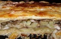 Інгредієнти:Борошно 4 склянкиМаргарин (або олія) 200 грСметана 400 грМ'ясо 500-700 грКартопля 2-3 шт.Цибуля 2 шт.Сіль, перецьСпосіб приготув