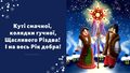 «Нова радість стала,Яка не бувала:Над вертепом звізда яснаУвесь світ осіяла».«Добрий вечір тобі,пане господарю!Радуйся! Ой, радуйся, земле,С