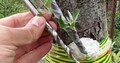 Прививка яблони с помощью шуруповерта и результат через месяц с небольшим, сверление происходит конусным сверлом и по касательной (касаясь к