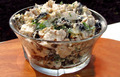 Ингредиенты:куриное филе — 300 гяйца — 5 штукчернослив — 150 ггрецкие орехи — 100 гтвердый сыр — 100 гмайонез для заправкисоль по вкусузелен