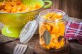 Ингредиенты:Тыква — 1 килограмм;гвоздика — 8 штучек;перец душистый — 6 штучек;сахар — 1,5 стакана;корица — 1 палочка;свежий имбирь — н