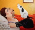 Я говорю мантру “жарко-жарко-жарко-как же тут блин жарко”, а муж говорит мантру “мне вообще-то завтра на работу вставать”. Собака залезает п