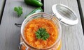Інгредієнти:Неочищені яблука 700 г.Часник 70 г.Корінь селери 135 г.Цукор 30 г.Сіль 20 г.Мелена паприка 4 гЧилі мелений 2 гпетрушкаСпосіб при