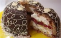 Інгредієнти:Готовий бісквіт, кекс або паскаМалиновий джем - 4 стол.ложкиМорозиво - близько 1 кг (залежить від величини форми)Горіхи - фісташ