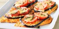 Ингредиенты:Баклажан — 2 шт.Сыр твердых сортов — 100 гПомидор — 500 гСырок плавленый — 1 шт.Чеснок сушеный — 1 ст. л.Перец черный молотый —