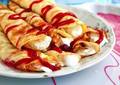 Ингредиенты:готовые блины — 5 штуктворог — 250 гсливки — 2 ст. л.яйца — 3 штукиминеральная или обычная вода — 2 ст.л.сахар — 2 ст.л.растител