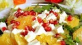 Інгредієнти:рукола: 100 гсир фета: 150 г.апельсин: 2 шт.часник: 1 зубчиксік одного лимонуоливкова олія: 2-3 ст. ложкизернятка граната : 2 ст