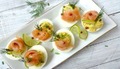 Апетитна закуска.Інгредієнти:2 яйця15 г масла вершкового10 г гірчиці25 г виницукор, сіль за смакомСпосіб приготування:Зварені круто яйця очи