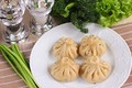 Ингредиенты: Мука — 500 гВода — 300 млСмешанный фарш (жирная свинина + говядина) — 600 гЛук — 2 шт.Чеснок — 3 зубчикаКинза — 1 пучокСоль и п