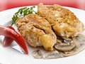 Биточки из курицы с грибами 500 г курицы, 50 г белого хлеба, 0,2 л молока, 150 г шампиньонов, 2 ст. л. сметаны, 2 ст. л. сливочного масла, п