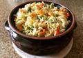 Приготовление:Промываем 1 стакан риса водой, добавляем очищенную и порезанную брусочками морковку.Солим и смешать со сливочным маслом, доб