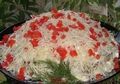 Ингредиенты:Куриное филе — 1 шт.Сыр — 50 гр.Консервированные шампиньоны — 1 банка,Чеснок — 2 зубчикаЛук — 3 шт.Яйца — 2 шт.Помидор — 1 шт.Ма