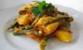 Інгредієнти:картопля - 600 гстручкова квасоля - 300 гцибуля - 1 шт.морква - 1 шт.часник - 2 зубціпомідори - 2 шт.олія - для смаженнязелень п