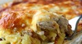 Ингредиенты:Куриное филе — 1 кгКуриный бульон — 500 млТвердый сыр — 100 гЛук — 1 кгОливковое масло — 4 ст. л.Мука — 2 ст. л. Шалфей — 0,5 ч