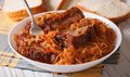 Ингредиенты:Капуста свежаяРёбрышки свиные нежирныеЛукМорковьМукаМасло растительноеЛюбимые специиСоль, перец Приготовление:Нарезаем ребра, с