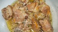 Ингредиенты: 600 г говядины (или свинины);150 г жирной сметаны;2 головки лука;1 ст. л. острой горчицы;1 ст. л муки;соль, черный молотый пе