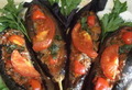 Очищенные от кожуры баклажаны обжариваем на сковороде.Отдельно обжариваем лук, мелко порезанный сладкий перец, добавляем к ним фарш и помидо