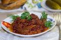 Ингредиенты:500 гр мякоти телятины (можно взять любое мясо),250-300 гр отварной фасоли,1 помидор,1 луковица,1 морковь,1-2 зубчика чеснока,