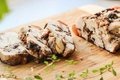 Ингредиенты:Чернослив (без косточек) – 8 шт.Грецкие орехи – 5 шт.Филе куриной грудки – 1 шт.Куриные окорочка – 2 шт.Желатин – 20г. (2 пак.)