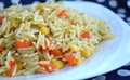Ингредиенты:Рис (лучше всего пропаренный) – 150 гр;Морковь — 1 шт.Шампиньоны – 200 гр.Болгарский перец — 1 шт.Лук репчатый — 2 шт. Чеснок –