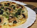Ингредиенты:шампиньоны — 100 гр;творог обезжиренный — 400 гр;помидор — 200 гр;cыр 17% — 50 гр;яичный белок — 3 шт.;базилик — 30 гр;укроп