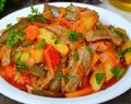 Ингредиенты:5 средних картофелин0,5 кг говядины2 головки репчатого лука3 маринованых огурца3 столовые ложки томатной пастыдушистый перецла