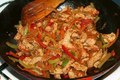 Ингредиенты: — рисовая лапша— 1 филе индейки— соус терияки— 2 средние луковицы— 1,5 средние моркови— 2/3 средней редьки— 2 салатных перца—