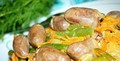 Ингредиенты:куриные сердечки- 500 грстручковая фасоль- 150 гр (у меня заморозка)лук — 1 головкаморковь — 1 штсметана — 4 стол ложкирастите