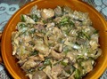 Состав и приготовление:Отвариваем куриные желудочки (500 г) до готовности с добавление лаврового листа (постарайтесь не переварить!).Обжарив