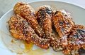 Ингредиенты:Куриные ножки или бедрышки — 6 шт.Кунжут — 3 ч. л.Кунжутное маслоЧеснок — 2 зубчикаКоричневый сахар — 2 ст. л.Красный кайенский